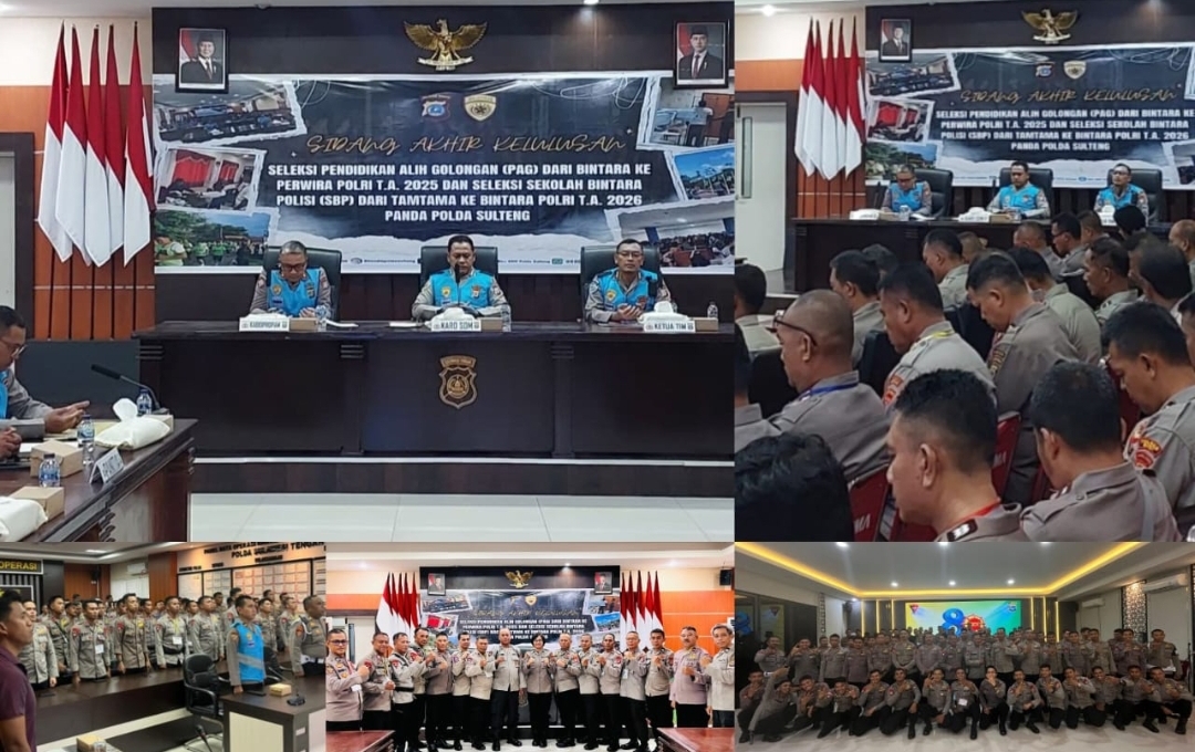 PALU, inakor.id – Polda Sulawesi Tengah menggelar Sidang Akhir Kelulusan Seleksi Pendidikan Alih Golongan (PAG) Tahun Anggaran 2025 dan Seleksi Sekolah Bintara Polisi (SBP) Tahun Anggaran 2026. Kegiatan tersebut berlangsung di Aula Rupatama Polda Sulteng, Jumat (24/10/2025).