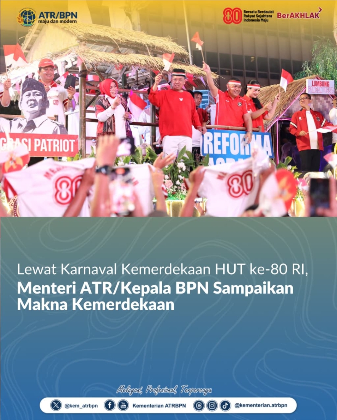 Lewat Karnaval Kemerdekaan HUT ke-80 RI, Menteri ATR/Kepala BPN Sampaikan Makna Kemerdekaan