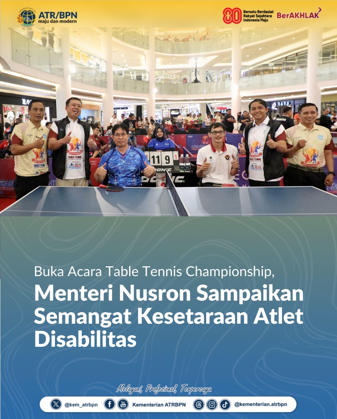 Buka Acara Table Tennis Championship, Menteri Nusron Sampaikan Semangat Kesetaraan Atlet Disabilitas