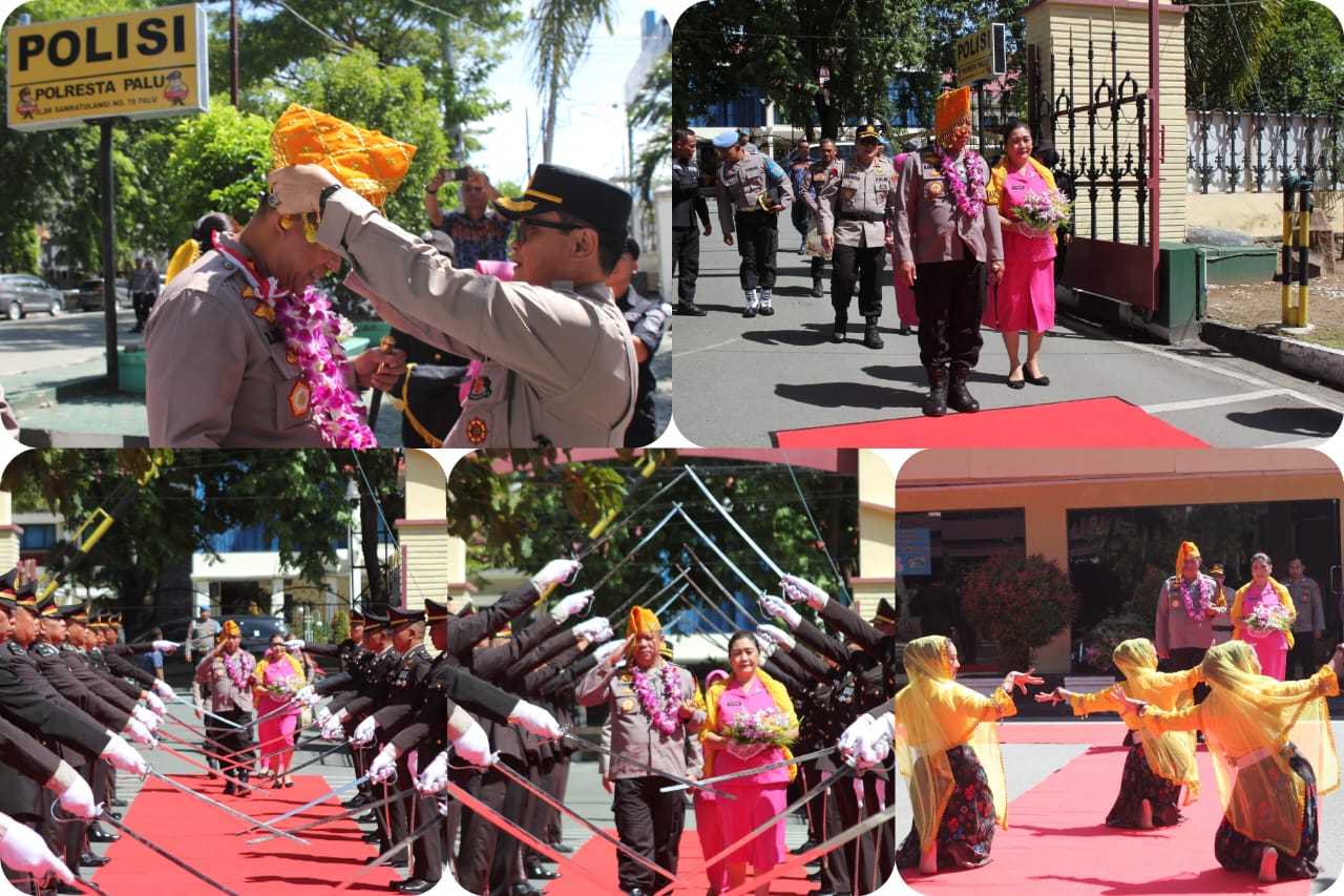 Tradisi Pedang Pora Sambut Kapolresta Palu Kombes Pol. Deny Abrahams