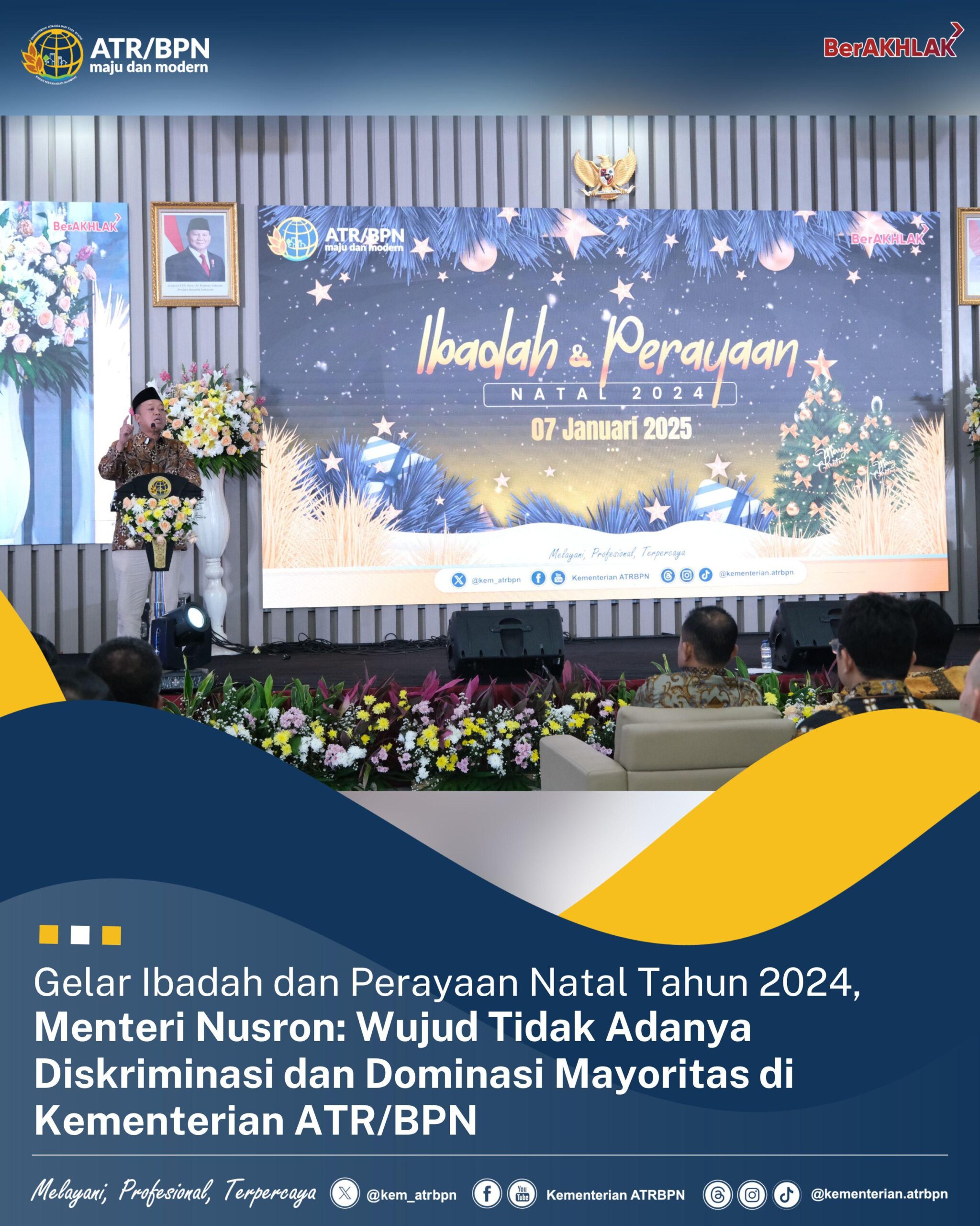 Gelar Ibadah dan Perayaan Natal Tahun 2024, Menteri Nusron: Wujud Tidak Adanya Diskriminasi dan Dominasi Mayoritas di Kementerian ATR/BPN