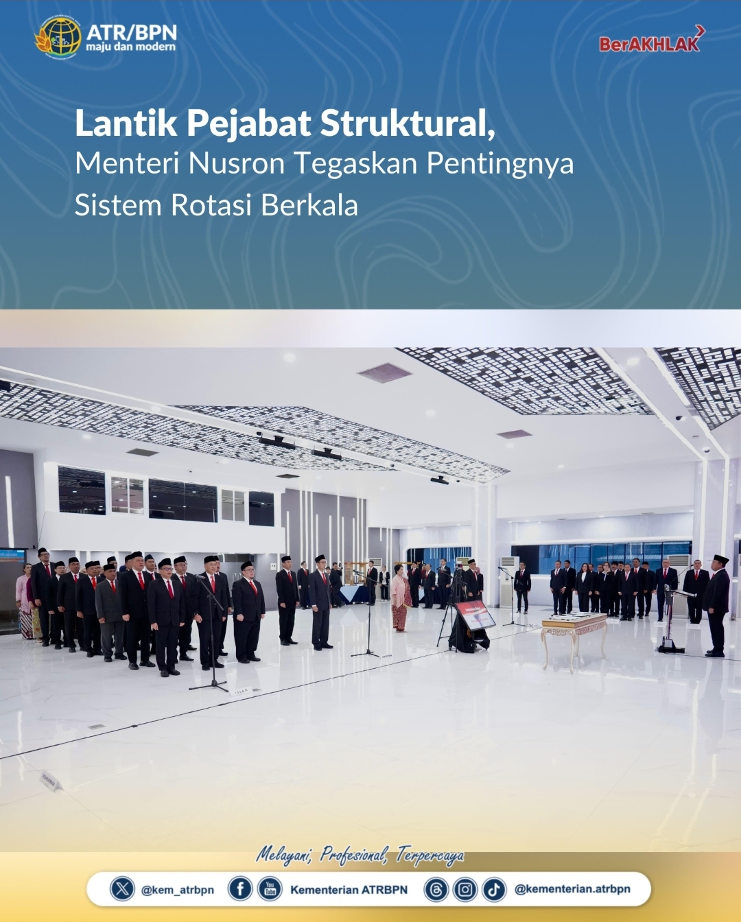 Lantik Pejabat Struktural, Menteri Nusron Tegaskan Pentingnya Sistem Rotasi Berkala