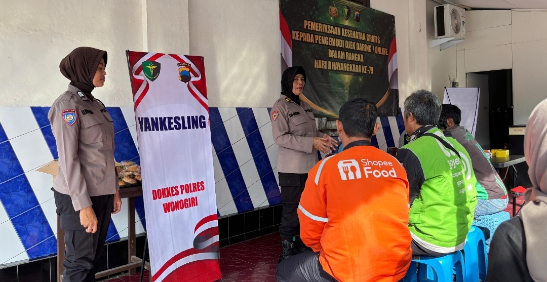 Polres Wonogiri Gelar Layanan Kesehatan Gratis bagi Pengemudi Ojol dalam Rangka HUT Bhayangkara ke-79