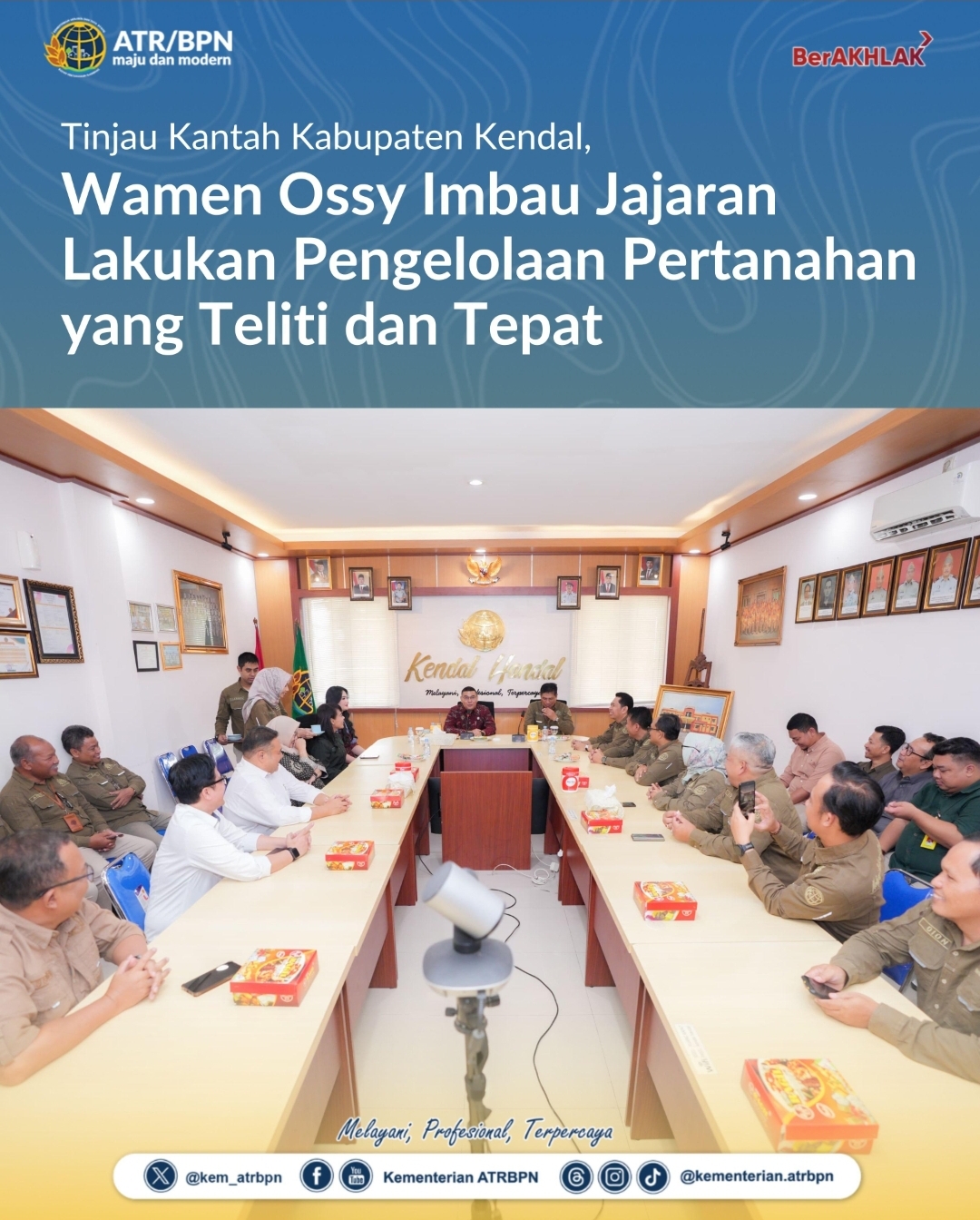 Tinjau Kantah Kabupaten Kendal, Wamen Ossy Imbau Jajaran Lakukan Pengelolaan Pertanahan yang Teliti dan Tepat