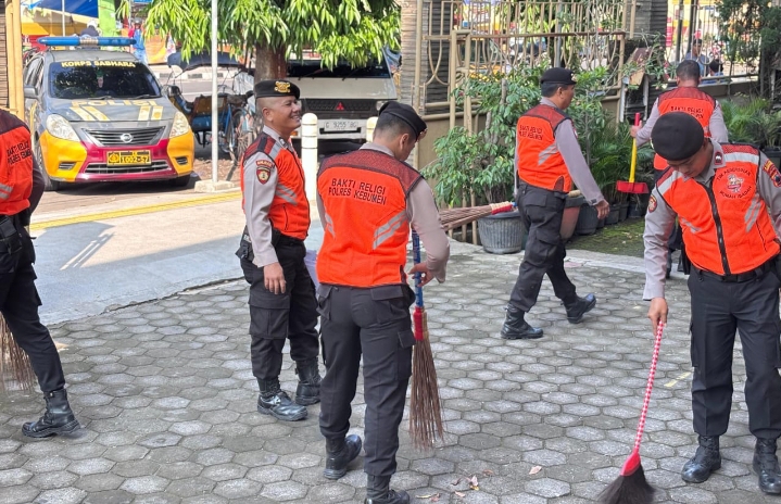 Polres Kebumen gelar bakti religi bersihkan Gereja St Yohanes Maria Vianney