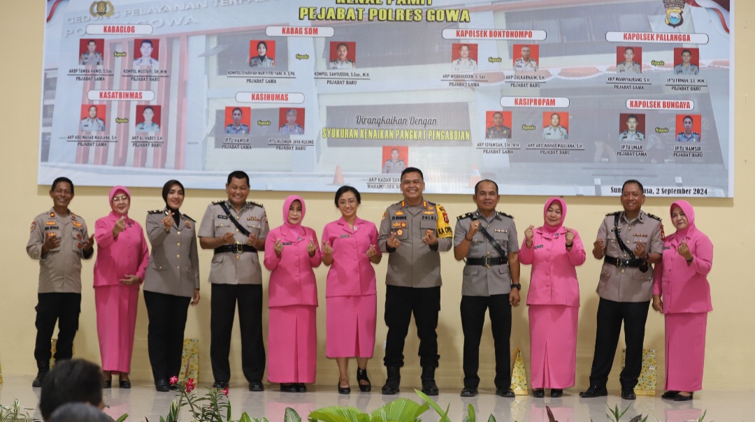 Polres Gowa Gelar Kenal Pamit Pejabat di Aula Rewako Wira Wicaksana Laghawa
