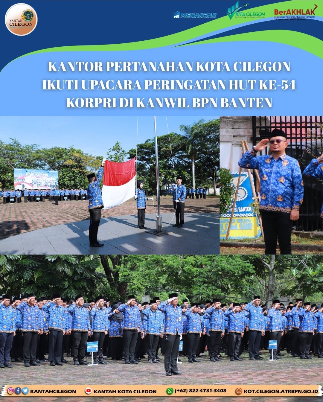 Kantor Pertanahan Kota Cilegon menegaskan komitmennya untuk mendukung agenda besar pemerintah dalam reformasi birokrasi dan peningkatan kualitas pelayanan publik. Melalui momentum HUT ke-54 KORPRI, jajaran Kantor Pertanahan Kota Cilegon berharap dapat terus menjalankan tugas dengan penuh tanggung jawab dan memberikan manfaat yang lebih besar bagi masyarakat Kota Cilegon.