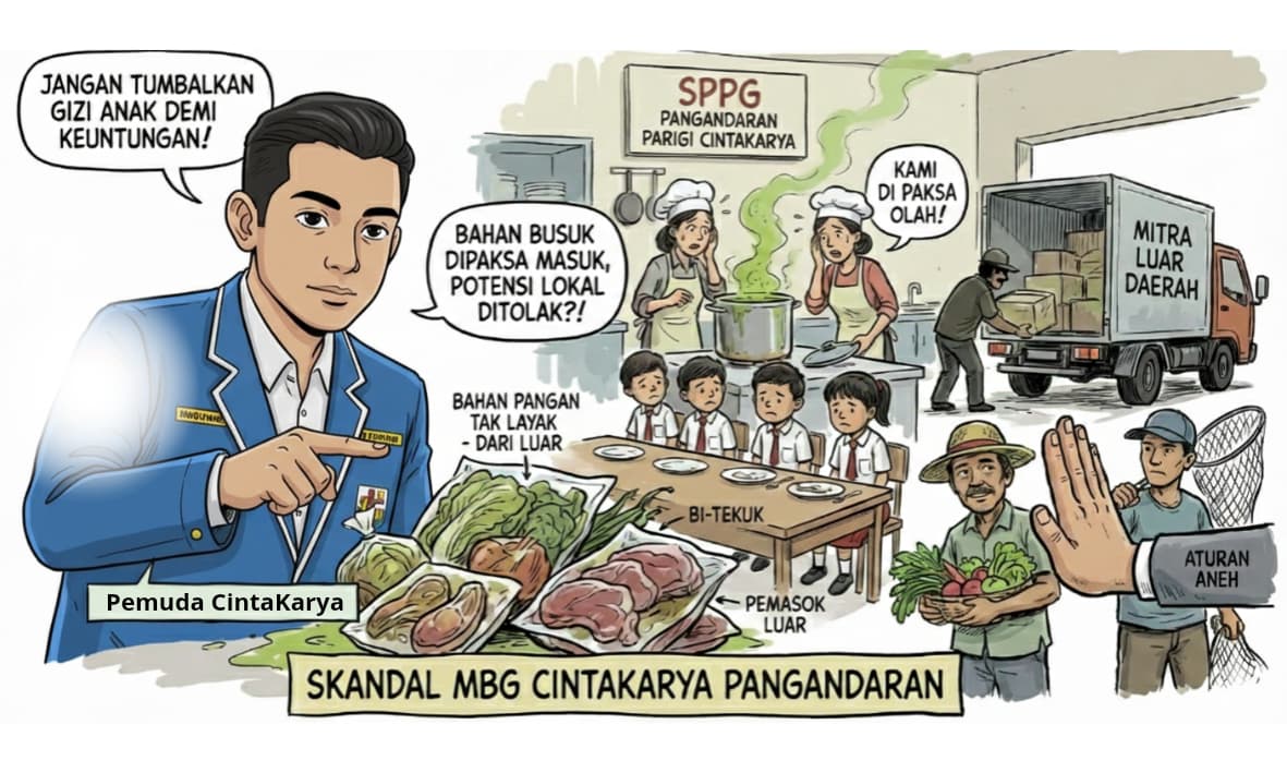 Tian juga mempertanyakan mekanisme pengadaan bahan baku SPPG Cintakarya. Ia merujuk pada hasil audiensi di DPRD Kabupaten Pangandaran beberapa waktu lalu yang menyebutkan bahwa pemasok bahan pangan berasal dari luar daerah.