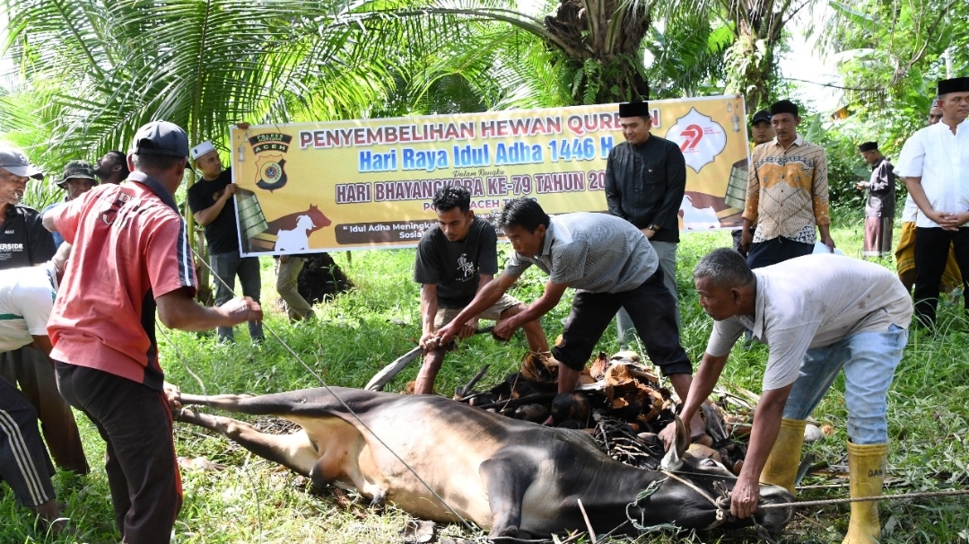 Polres Aceh Timur Salurkan 450 Paket Daging Kurban Kepada Anak Yatim, Fakir Miskin dan Warga Kurang Mampu