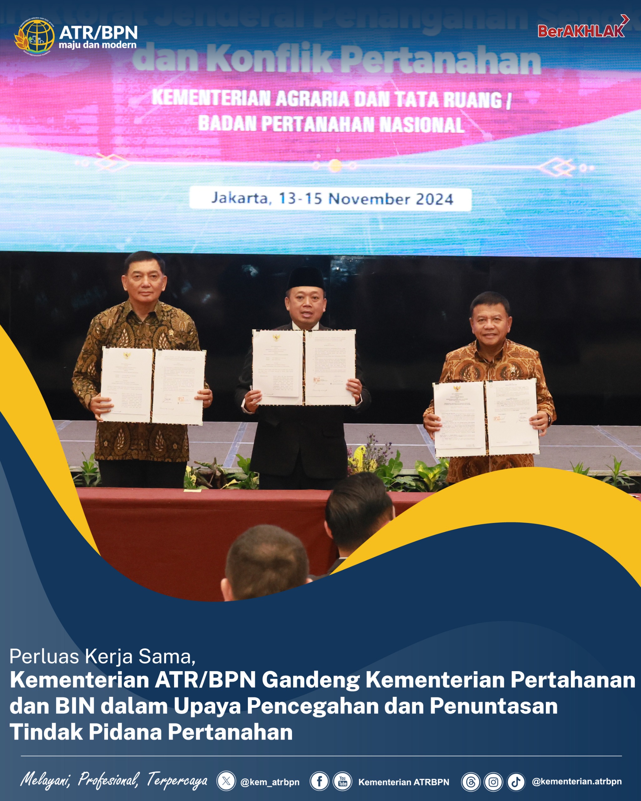 Perluas Kerja Sama, Kementerian ATR/BPN Gandeng Kementerian Pertahanan dan BIN dalam Upaya Pencegahan dan Penuntasan Tindak Pidana Pertanahan