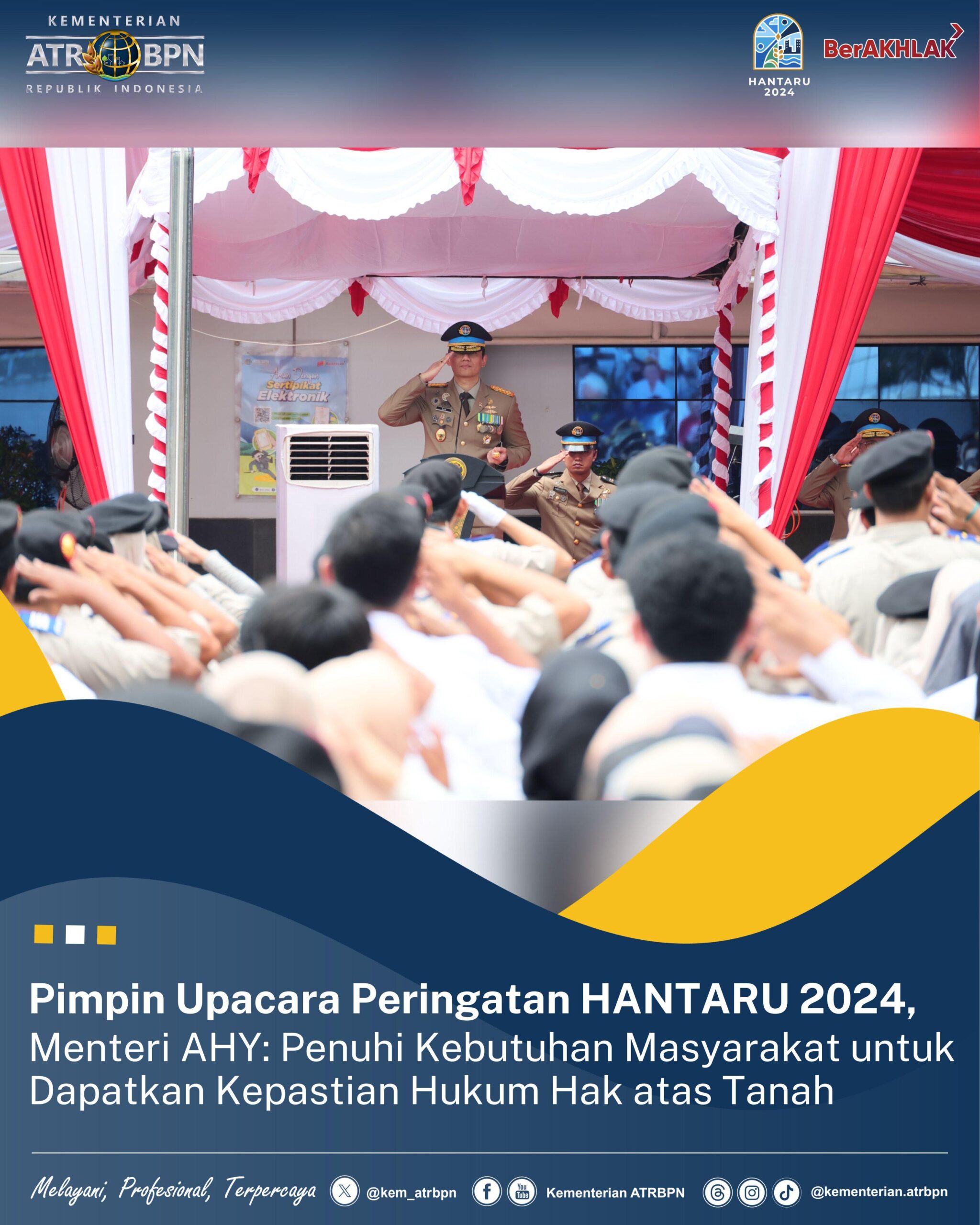 Pimpin Upacara Peringatan HANTARU 2024, Menteri AHY: Penuhi Kebutuhan Masyarakat untuk Dapatkan Kepastian Hukum Hak Atas Tanah