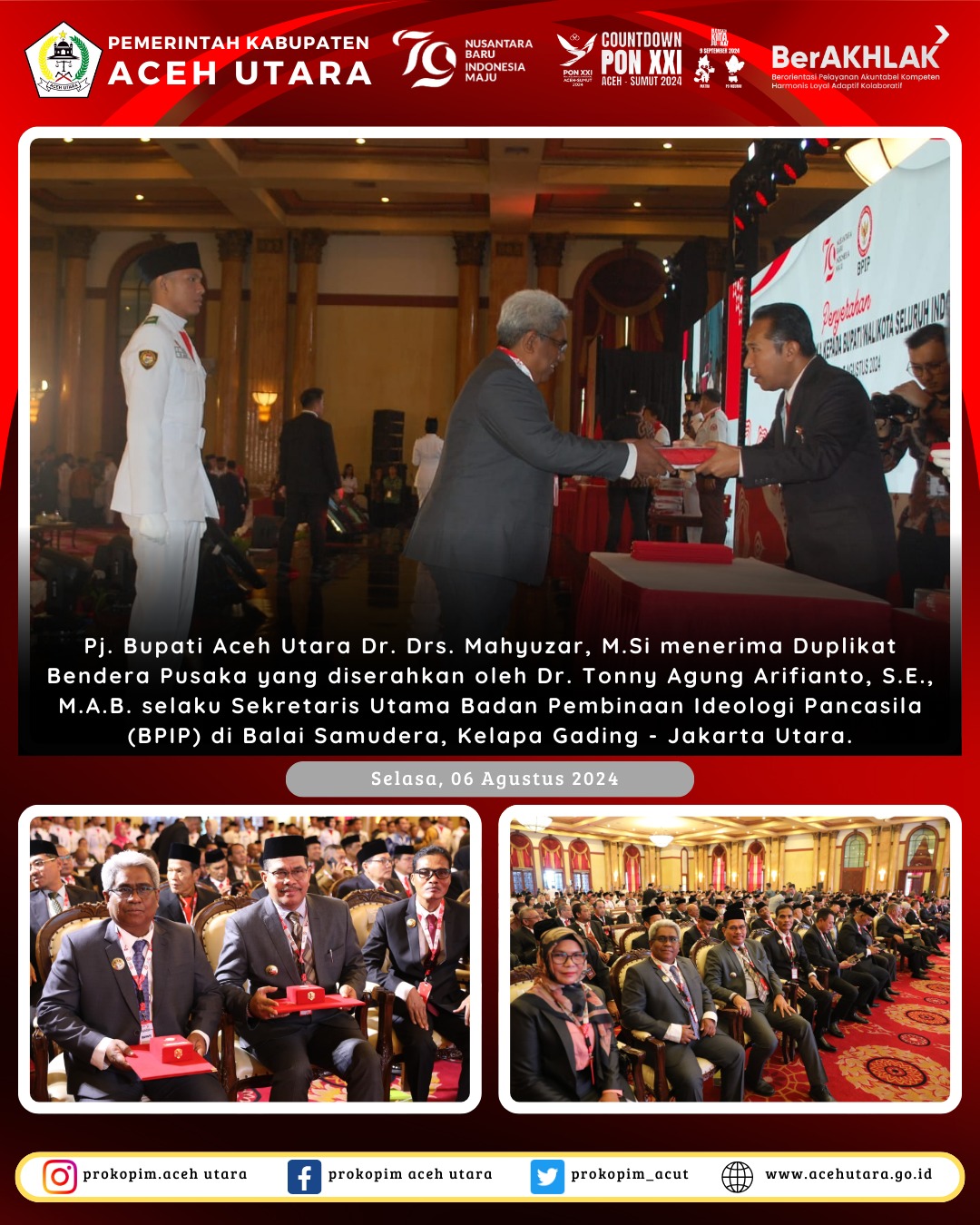 Pj Bupati Aceh Utara Terima Duplikat Bendera dari BPIP