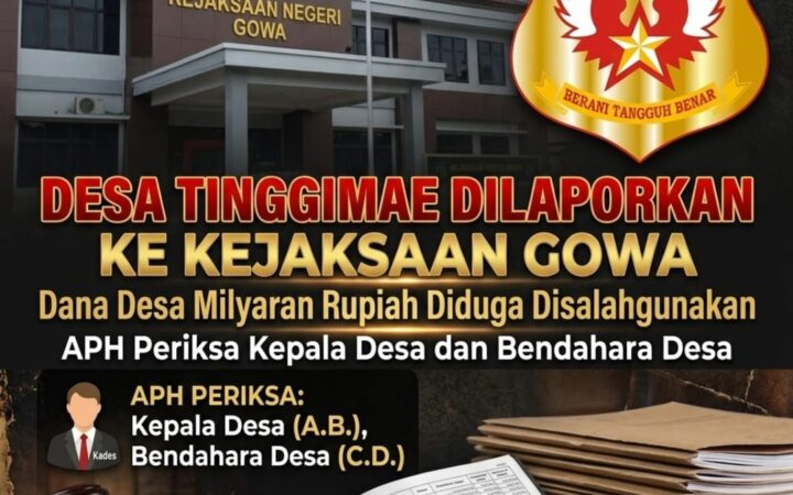 Dugaan Penyalahgunaan Dana Desa Milyaran Rupiah, LSM INAKOR Laporkan Kepala Desa dan Bendahara Desa Tinggimae ke Kejari Gowa