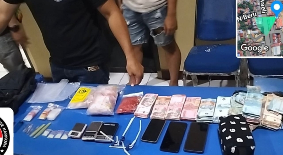 Dari lokasi kejadian, ditemukan sejumlah barang bukti, di antaranya empat paket sabu, uang tunai senilai Rp62.022.000, tiga timbangan digital, dua pack plastik klip, satu tas selempang mini, satu tas ransel hitam, empat plastik klip berisi butiran kristal diduga narkotika jenis sabu, satu dompet cokelat, dua korek api, serta uang koin pecahan Rp500 sebanyak Rp2.000.