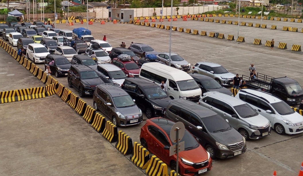Total seluruh kendaraan tercatat 6.911unit yang telah menyeberang dari Sumatera ke Jawa pada H+5 atau turun 2,3% dibandingkan realisasi periode dengan tahun lalu sebanyak 7.072 unit.